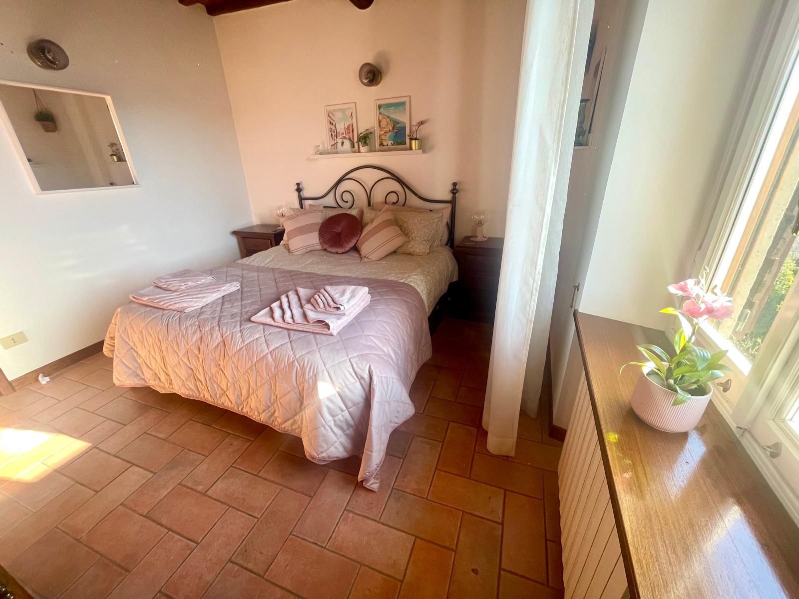A charming space with classic Tuscan textiles and thoughtful details - warm hues and authentic character make this room uniquely inviting.